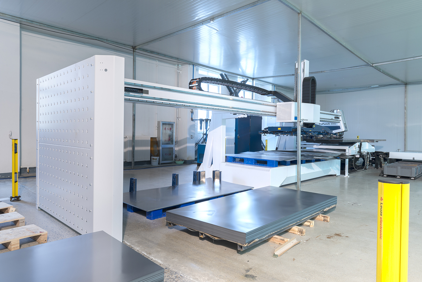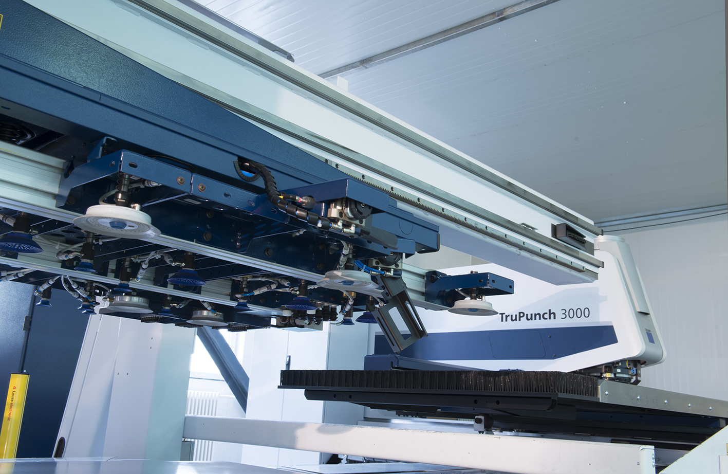 德國(guó)通快TruPunch 3000沖床 是國(guó)際上最先進(jìn)的數(shù)控沖床,在沖床領(lǐng)域是獨(dú)一無二的結(jié)構(gòu),特點(diǎn)是所有的模具可以360°旋轉(zhuǎn),具有自動(dòng)化程度高、沖剪速度快、加工精度高等特點(diǎn),大大提升工作效率。
